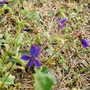 💜ヒメスミレ💜姫菫 濃紫色の花をつける小型のスミレです。 駐車場のコンクリートのすきまで咲いていました。 嬉しくて「ここにも居たのね💕」と、声をかけてしまいました。 2021.3.19撮影