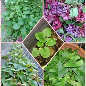 紫陽花花を全部✂️しました😅花は明日の燃えるゴミで出します😅 ヒメスミレ保護した右側、側溝の隙間で頑張ってる子達が左です😉真ん中はビオラのこぼれ種からの子です🤗