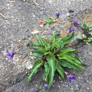 朝活🚶♀️散歩道にて… 健気な野良スミレ😲 今迄…気にしてなくて初めまして 雨☔上がりでこんな感じ⤵️