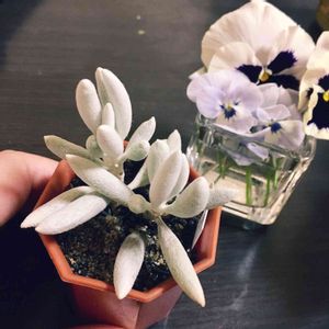 本日の戦利品✨ 一昨年からずーーーっと狙ってて、 250円ミニ多肉入荷!の鶴仙園さんのブログに んん?!このシルエットは!! と言う立ち姿を見つけて、立ち寄ったらやっぱりありました(*´ω`*) 銀月✨ もふもふしてる! 白い! かっこいい!