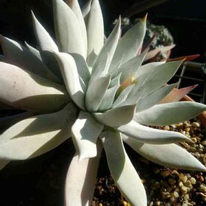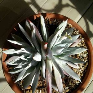 ❄️雪のように白い大型銀月☺️💕 1/13のpicの中の銀月さん😊 ホントに色白です。 この寒さでも、外の多肉マンションにお住いです。 明日からの寒波が心配で、軒下にマンション移築しました😅 でも、外は外です。😅どうかな~💦