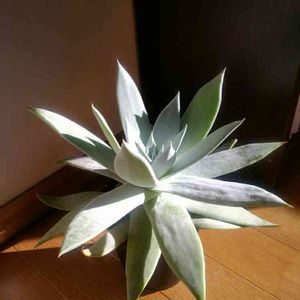 朝まで雨でしたが、日が差すとともに強風が吹き始めました。 あんまり凄いから、気になってベランダを見に行くと、そこには 風に煽られまくる仙女盃が。 葉が薄くて広いので、はためくのですね。 他のダドレア3種は割とカッチリしてるのに。 これだけは屋内退避させました。