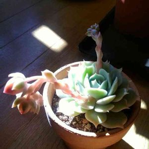 記録用カンテ 一ヶ月もしないのに倍の大きさに! 部屋の中において、夕方に日が数時間しか当たらないので、開き気味💦 窓際にお引越ししました! 春の植え替えが楽しみ。