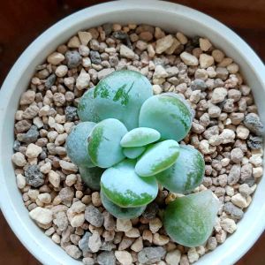 夏ベリア。新しい葉っぱが生長止まってて小さく小ぢんまりしています。色白美肌でむちむちと可愛らしいこのコは、エレガンス Echeveria elegans とラウイ Echeveria lauii のハイブリッド。 https://pukubook.jp/detail/Echeveria_Ice_Green #エケベリア #アイスグリーン #エケベリアアイスグリーン #Echeveria #EcheveriaIceGreen #多肉 #多肉植物 #多肉図鑑 #succulents #pukubook