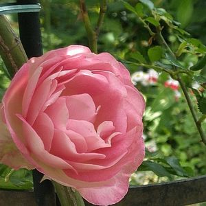 明日に持ち越しかと思った薔薇さん開花レースでしたが、午後になって南側の鉢のピンクさん、5番手で開花認定です💕 名無しのつるバラさんですが、花弁がしっかりしていて花持ちが良く、なんと言っても素晴らしく芳香なのが自慢です✨ 今年はなるべく下の方から巻いてバランス良く咲かせるのが目標でしたが、ステムが長いのでやっぱり横に広がってしまいました😅