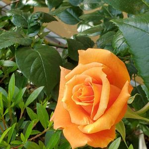 『ロイヤルサンセット』が更に育ってこんなになりました😳 重くて下のツツジにもたれてしまいました(^_^;) 後からつるバラと知ったので誘引しないといけないですね☺️