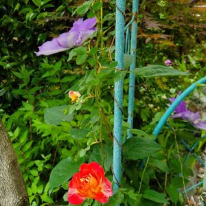 『ロイヤルサンセット』を仕立てられるようにオベリスクを付けました😊 二番花以降が楽しみ🎵