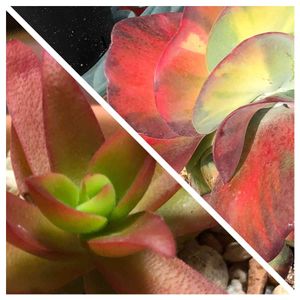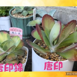 ⏪前のpicより 【カランコエ属 シルシフローラ錦】 Kalanchoe thyrsiflora f.variegata 和名 唐印錦 デザートローズ 砂漠の薔薇 【カランコエ属 ルーシー 錦】 Kalanchoe luciae f.variegata 和名 紅唐印 錦・唐印 錦 流通名 デザートローズ 錦 kazu様&びーばー様が立ち上げた 「🏷赤フチ同盟」に 参加させていただきますね ネームタグは【トーイン錦】 ホームセンターの売れ残りが、 うちの唐印錦で1番綺麗に✨ 画像のこちらは覆輪斑タイプ 唐印錦にはも中斑も存在し、 また3方向に葉を広げたり、 他には葉先が波打ったりの 変わり葉タイプもあるとの事 南アフリカ、ケープ州に分布🇿🇦