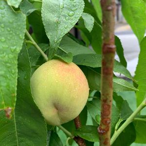 長野県からやってきたナツキと言う品種の桃の木🍑いくつも小さな実がなっていましたが、最近の風の影響で落ちてしまって一つだけ生き残りました✨家の庭に植えてから2ヶ月程経ち、ちょっとずつ成長してます🌲家の裏にある山から猿が狙っているので気をつけなければ、、、。笑 今後の成長が楽しみです🥰