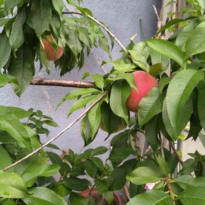 植木鉢に植えられお手入れが されていないのに、桃🍑がなっていました