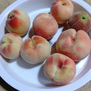 我が家の晩成種の桃 今年は、不作 30個ほどの実が、虫に、やられたり、落下果実など、まともな桃が、数個に、なりました。 収穫一番実です。 あとも、リンゴみたいな硬めです。 果肉は、黄色実帯びてます。 また、来年は、ちゃんとした実が、収穫できるように、精進します。