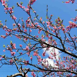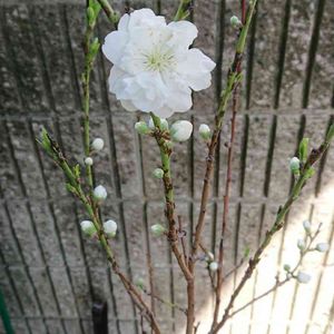 こんにちは👋😃 今日は、良い天気 気温10℃ 日向は、春めいた暖かい昼です。 地植えの桃の花が満開です。 上向き花を取り、低い位置の花に、自家受粉させました。 高い位置は、耳掻き2m 棒で、気休めのこちょこちょ、効果は、3割りぐらいかな。 スモモと、ユスラウメは、散り始めました。 生長時期が、追い付き、例年くらいに、なりました。