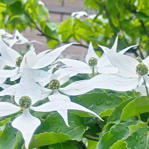 🥝始めてのゴールドキウイ🥝 ①②③④……4年目にして漸く実🥝になりました! 去年までは雄しべの花が早く咲き受粉が上手くできなかったのですが? 今年は雄花の花が咲いたら花を冷凍庫に保存。 🐝雌花が咲いた時点で保存していた雄花を雌花に受粉してみました!🐝 しばらくみてなかたのですが? ナ ナ 何と? 実にΣ(゚Д゚)なっていました! 🥝🥝🥝🥝🥝🥝🥝 7個しか? 今年はできなかたのですが? 来年はまた、頑張りま〜〜〜〜す! 🥝🥝🥝🥝🥝🥝🥝 ⑤ヤマボウシの花❣ 2025.5.29.📸pic❣