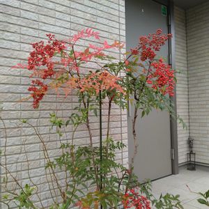 11月の木々。南天の実はたわわ 二枚目のヤマボウシには、実は一個しかつかなかったけど紅葉が美しいです