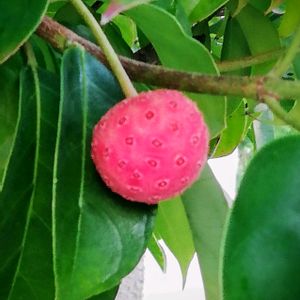 おはようございます🍒 散歩道で見つけたヤマボウシの実🍒 食べられるのは知っていますが❓😅 食べたことありません😅