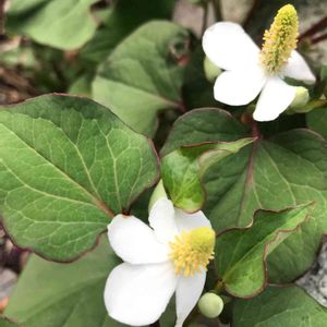 ドクダミ 白いお花が可愛いのですが、庭のあちこち大量に増えてしまい、抜くのに苦労してます😅