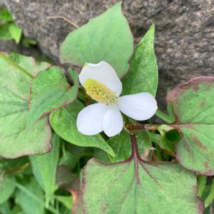ドクダミ 花は涼しげで可愛らしいけれど、、、 繁殖力が凄く増える増える(笑) 昨年は乾燥させてお茶にしてみたけれど、クセが💦 麦茶とブレンドしたけれど、やはり飲まず。 香りも独特でいかにも体に良さそうで、嗅いでいるとクセになりそうな感じ。 今年は眺めるだけにしようかな🤣