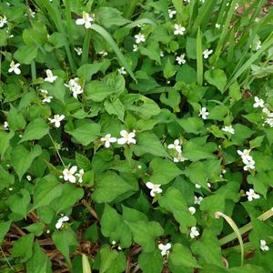 水無月20日 どくだみ 咲いています 葉にお湯、お塩かけると枯れますが根は活きてます、根までからす除草剤を葉に撒きますか?野菜たち大丈夫かな、増えて困っています‼️ 根まで抜き取るのが一番ですね👅😱 👵(匂い きらい) お茶 のみません お盆まえ 草刈りしますか、きれいでやっかいなお花です😱