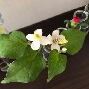 近所の人の頂き物🌱 どくだみって草むしりしても根っこ取れなくて大嫌いだけど…班入りはちょっとオシャレに見える〜🤭 うーん💧 匂いはやっぱりどくだみです😨