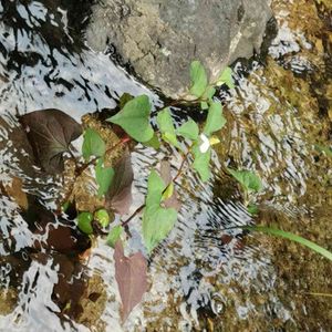 ヽ(*´∀`*)ノ.+゚おはよ~♪.+゚ 私…どくだみだと 思うのですが… 小川の中でも 育つのですね〜〜。 ᕦ(ò_óˇ)ᕤ୧(﹒ᴗ﹒)୨ ※昨日…、8重どくだみの苗みつけて〜 迎えちゃいましたあ〜〜。増えそう…だから…鉢植えに〜〜