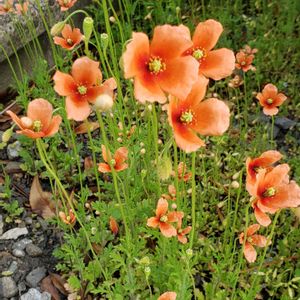 多分、ひなげし 富山市では、私が見た範囲では、あまりナガミヒナゲシを見かけなかった。 春先に草むしり2時間半かけて、5枚目の写真の種をまいた。 最近、オレンジの可愛らしい花が。まさかのナガミヒナゲシ⁈と思ってしまい、可愛らしいのに危険外来植物指定と知り、慌てて抜いてしまった。いうか、スギナやスズメノカタビラ、メヒシバの方がよっぽど危険指定雑草だと思うけどー。 今朝、庭パトしたら、まとまった箇所に5株ほど写真のひなげしが。 ひなげしとナガミヒナゲシの違いを調べて、葉っぱの形が違うとわかり比べてみたら、多分、やっぱり種を蒔いたひなげし😊 2枚目の葉っぱを見ると、ひなげしの葉っぱっぽい。 良かった〜♡
