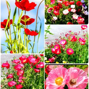 今日のお花 ひなげし 通り道のHotel駐車場🅿️花壇に 仕事帰りに コラージュ