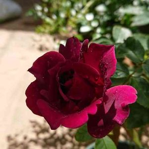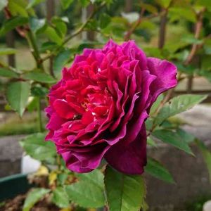 おはようございます😃 雨が止んで暖かく半分くらい青空の朝です⛅️ ライラがブルーを帯びた大人っぽい赤で咲きました💕 こういう色のバラは秋こそ美しさが際立ちますね✨