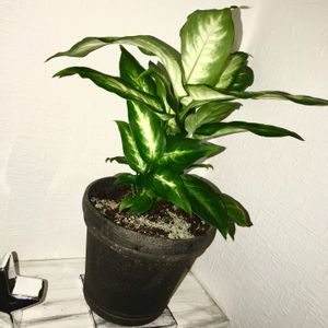 ディフェンバキアカミーラです。 元々は班入りでしたが全て生え変わったら葉っぱは緑色のままです。