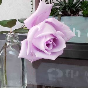 薔薇繋がりで、連投すみません。🙏 庭で育てているブルームーン。🌹 隣家の方を向いて、しかも下向きに咲いていたので、カット✂️してきました。😊 大きめなお花で、香りもとても良いので感激❕ (*^▽^*)🎶 とりあえずの空き瓶にて失礼します。😆💦 こちらにも 🏷️ごっつご機嫌 を付けさせてください。😄🎶 頑張ろう❗日本‼️ 👊✨