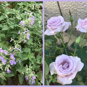 🏷夏色ブルー 庭のブルームーン💜また咲き出したんですよ💜キャットミントとのコラボ💜いいでしょう