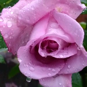 おはようございます(*^^*) 雨上がりの曇り☁️です 庭の薔薇🌹ブルームーン咲きました 貰ってきて2年目私の背丈より大きくなりました😊