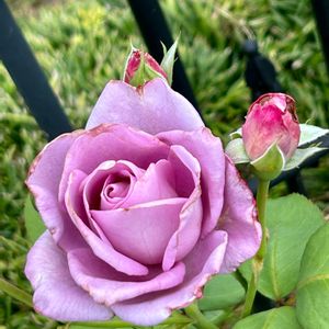 フェンス脇のブルームーン春よりも一回り株が大きくなり,2番花開花です🌸🌸。但し,花びらが雨☂️や風が強かったせいか傷があり,少し残念😢😢だった。