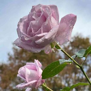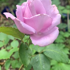 雨上がりの古参のバラ🌹ブルームーン🤗🎶 夏の間放ったらかしでしたが、綺麗に咲いてくれました✨💙✨