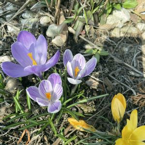 雪解け花壇の春一番が咲きました。 北海道はまだ寒いです~ 🏷️ユーミンの日 雪解けに咲くクロッカス