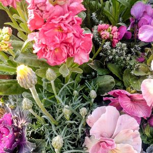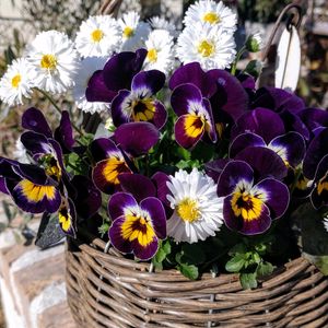 朝から美容室へ行きリフレッシュしました💆寒いと出かけるのがおっくうですが…帰りにはスッキリしますね😉白と紫の組み合わせが可憐な籠寄せ植え🤍💜ほっこりします😃