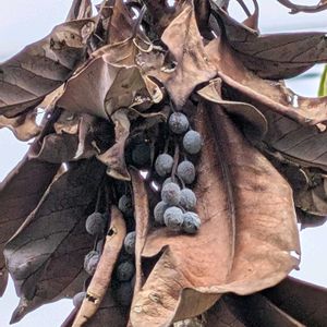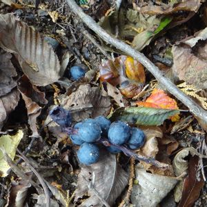 ユズリハ(譲葉) ユズリハ科ユズリハ属 常緑高木 の落ちた果実 11月2日 場所:浜松市天竜区 常光寺山