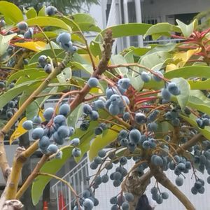 こんにちは〜😊 買い物先 駅前の花壇で ユズリハの実がなっていました🟢🟢🟢
