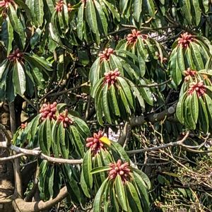 オハヨウゴザイマス〜🙏 睦月(7日)火曜日(☀後☁) の予報〜 又やっちまったな〜⁇⁇ すいましぇ~ん🙏🙏🙏 今日のお花💐が~昨日の今日のお花💐に成ってしまいました~が…サンカさせて下さいマセ〜🙏🙏🙏🥰😍🤩😉 昨日が~🐸の日だった~のに~それも合わせてサンカさせて下さいネ~🙏🙏🙏 ①…昨年万博記念公園で買わされた〜娘からのLINEにて~(ガジュマル)の根っこが~🏷️ムッチリぷくぷく〜 ➕️ ぺぺロミアセルペンス ➕️ コリウス ➕️ フィットニア etc…盆栽風の寄せ植え… 風水に良いからと〜私には〜かなりの値段でしたが~リフォ〜ムも完成しましたし〜玄関先に飾りたいとか〜結構重かった〜 🏷️🐸の日 🏷️毎月6日は🐸の日 🏷️ムッチリぷくぷく 🏷️むっちりぷくぷく 🏷️つる巻き月曜日 ②…春にお出かけした香りの公園にて~(4/25日🤳📱) ユズリハ…譲葉(ゆずりは) 常緑高木 春に新しい葉が出ると古い葉が場所を譲るように落ちて生え替わるようすが特に目立つことが特徴で和名の由来になっている 別名 「ウスバユズリハ」 🏷️昨日の今日のお花💐 🏷️昨日のきょうのお花💐 🏷️青空 🏷️青空の下 にもサンカさせて下さいネ~ ③…昨年(12/17日)にお出かけした際に立ち寄った香りの公園にて~part② ユズリハの果実(黒い実) 実が成ってたのを~コラ〜ジュしました~ 〜以下同文〜 ④…ユズリハの果実(黒い実) をアップで~🤳📱パシャリしました~足下には🏷️付けが有りましたが~春と冬の違いを見て頂きたくて~それも〜コラ〜ジュしました~🏷️付けにはトウダイグサ科と成ってますが…最近はユズリハ科に変わりました〜前のママですネ~😱😰😫😵 ⑤…ユズリハの木 ➕️ ユズリハの雄花をコラ〜ジュしました~初めて見付けた〜ユズリハのお花(これはまだ蕾かな~)又日にちをずらせて〜開花したのを見たいでㇲ〜 🏷️コラ〜ジュ 🏷️コラ〜ジュ仲間たち 🏷️picコラ〜ジュ にもサンカさせて下さいネ~今日も宜しくデ〜ㇲ🙏🙏