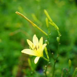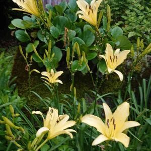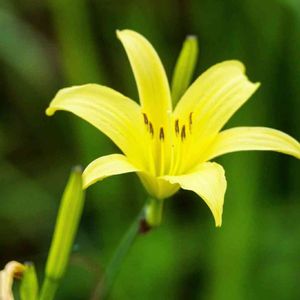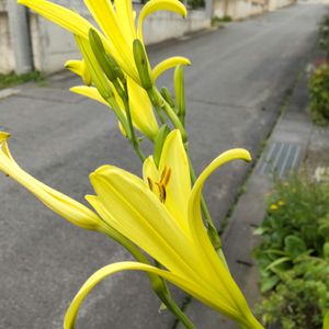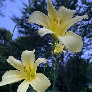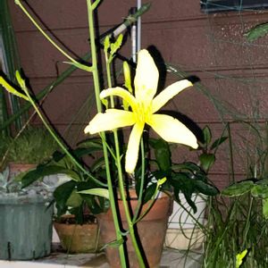 我が家の庭 ユウスゲ(夕菅) ユリ科、ワスレグサ属 18:45分撮影 和名は花が夕方に開き 翌日の午前中にしぼみ 葉がスゲの葉に似ていることに 由来 レモン色🍋の花が涼しげで とても綺麗です。