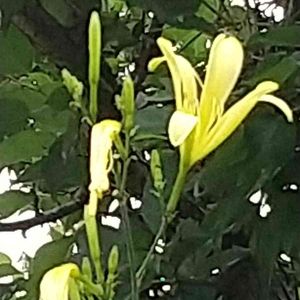 ユウスゲ ススキノキ科 少し晴れ間の見える1日でしたが、pm 4:30頃早くも咲いてました💓💓💕 とても優しい柔らかな色の黄色です💕 南国市はユウスゲが自生しているそうなんですが、まだ出会えていません❣️