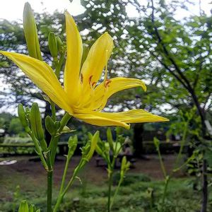 散歩道で見つけました❣️💕 カンゾウより葉も花も優しくて 黄色がとても綺麗です💕 キスゲ?でしょうか?