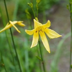 二年前 いつもなら帰ってしまう時間まで花散策を愉しんでしまった効用⁇ なるさんの投稿であの日の感動を思い出し投稿することに‼ 4時から咲くのを待っていた方がユウスゲの話を教えてくれました。 初めて見る美しい花姿にほれぼれ特に二色の雄蕊に魅せられてしまいました。 夕方咲き翌日の朝閉じる。 レモンイエローのラッパ状の花を上向きに咲かせる。 似ているヘメロカリスは欧米でユウスゲを園芸種化したものだそう。 この日も一期一会に感謝でした。 (o^―^o)ニコ 追記 訂正です この画像は2年前のものでそのときはススキノキ科となっていましたがツルボラン科が正しいようです。😅