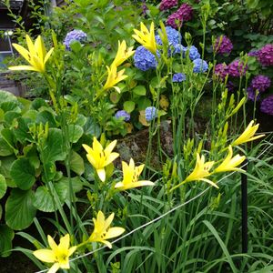 ユウスゲ(夕菅) 別名:キスゲ ツルボラン科ワスレグサ属 花期:7〜9月 名前の由来:花が夕方に開き翌日の午前中にしぼみ、葉がスゲに似ていることに由来 ・1本の茎の先端が花序が枝分かれしてレモン色のラッパ状の花を上向きに次々と咲かせる ・田中澄江さんによる『新・花の百名山』で榛名山を代表する花の一つとして紹介されています。 朝ゆっくり出かけたので開いた花には逢えないかと思っていましたが、天気予報がはずれ目的地に着いた時は霧🌫でした。 その為か沢山のユウスゲがまだ閉じずに見られました🙌 優しい色のユウスゲがお気に入りになりました💕
