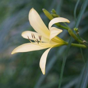 ユウスゲ(夕菅) 夏の夕暮れに、スーッとのびた花茎に綺麗なレモンイエローの花が咲き翌日にはしぼみます。 ユウスゲが咲く庭を眺める頃、カナカナ♪と鳴くヒグラシの声を聴きながら今日も穏やかな1日が終る事に感謝です~*.〜☆*♡〜✧*。