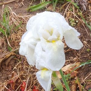 2020.03.30 昨日雪2℃今日寒い曇り日 2階から庭を見たら白色のアイリスが花びらを出していました 今日はサムーイです あしたからまた暖かい日になって行くそうです