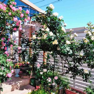 玄関開けてすぐの飛び込んでくる風景🌹薔薇春風🌹