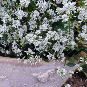 ♡カフェのお花♡ 素焼きの鉢に白い小花が似合って ました✨