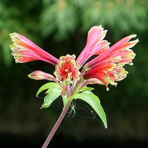 原種アルストロメリア プルケラ🌱 おはようございます! 花散歩にて 初めての出会いで、赤系でも涼しげな雰囲気でした✨✨‼️😁 🏷️あっ火曜日 今日も素敵な一日を🍀