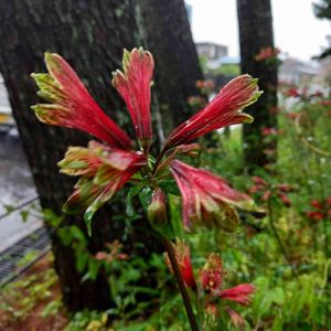 6/5㈯②❤️追記あり❤️ アルストロメリアの原種 Google検索で出たのは Alstromeria psittacina プルケラとは読まないですね〜😅 Alstrmeria plucheraアルストロメリアプルケラと、画像ではソックリに見えますがどこが違うのでしょう? それともコレはプルケラですか? ❤️追記❤️……………………………………………… kumakoさんが調べて教えてくださいました。アルストロメリア プッシタキナとアルストロメリア プルケラ は同じだそうです💡 kumakoさんありがとうございます😄 わかってスッキリしました〜❣️❣️ ………………………………………………………………… 午前中の草刈りで1本見つけました😍 建物に近い場所に咲いていましたので、 刈り取られずに済みましたε-(´∀`*)ホッ 去年も1本だけヒョロヒョロのが咲いていて、それは刈り取られましたが、これはシッカリしています。 ユリ科アルストロメリア属。 ユリズイセン、インカのユリとも呼ばれます。1番開いた状態がこれです。 園芸品種のアルストロメリアよりも野性的ですね。綺麗じゃない!!と書いていた方がいましたが、私はこういう野性味ある花も好きです😍❣️❣️💚 🏷アの付く植物