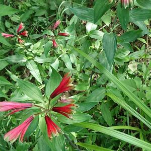 公園の端っこの細道、誰も歩かない日当たりの悪い湿った場所で咲いていました。 アルストロメリアの原種のひとつ、プルケラだそうです。野性味溢れています。